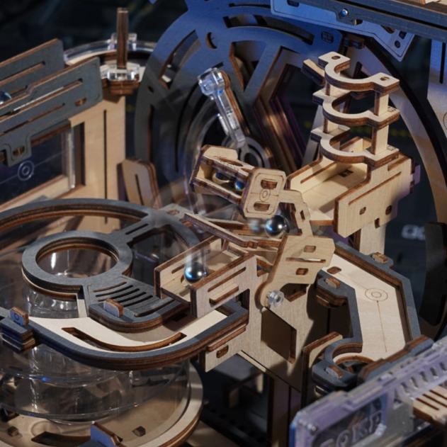 Zbuduj własnoręcznie futurystyczny tor kulkowy i patrz, jak stalowe kulki poruszają się po misternie zaprojektowanych torach, schodniach i windach.
